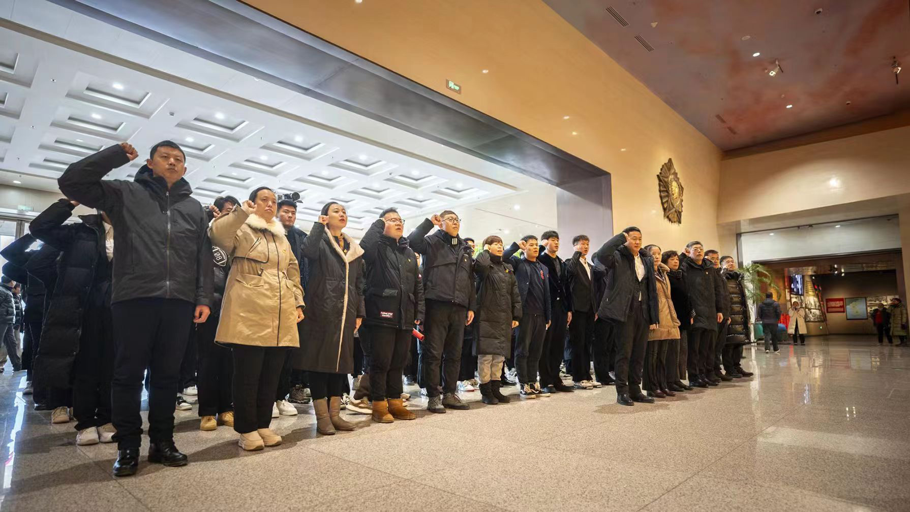 仪式结束后,我校一百余名师生在抗美援朝纪念馆内一起重温抗美援朝历史,为烈士敬献花篮。党委书记耿乃国、副校长张丽影,缓步上前仔细整理花篮缎带,全体人员鞠躬默哀。师生党员在庄严的党旗下,重温入党誓词,重忆入党初心。