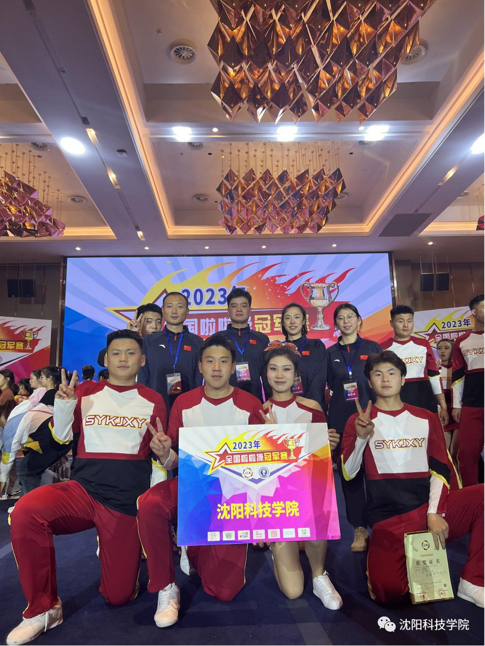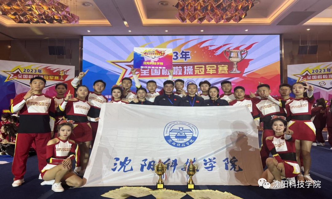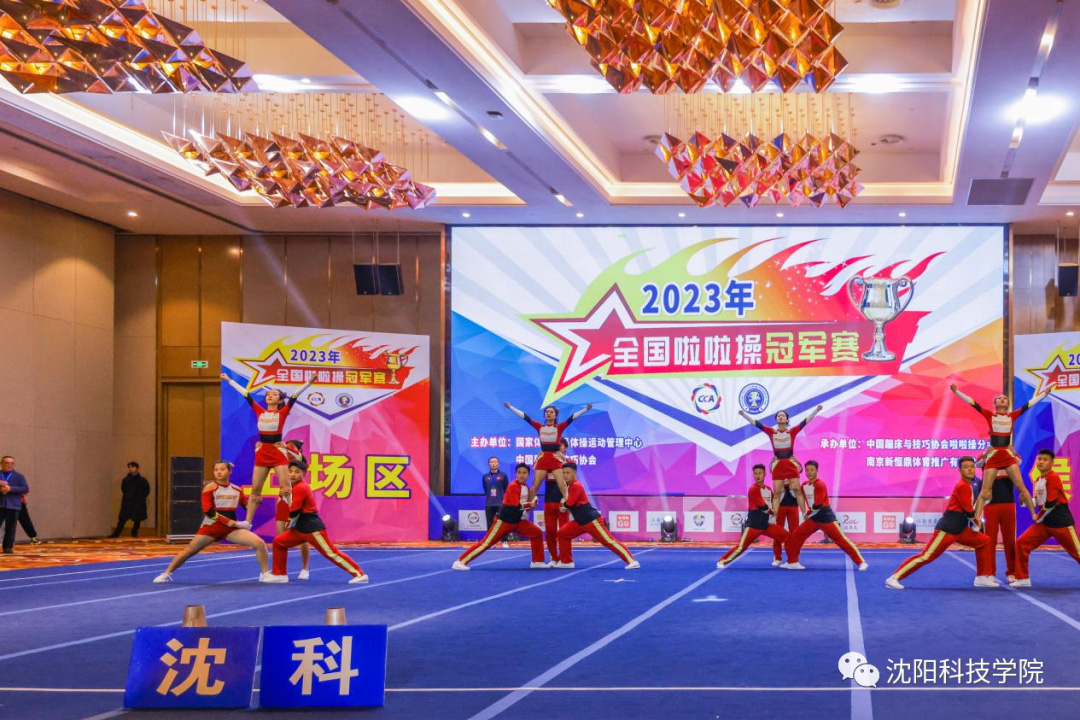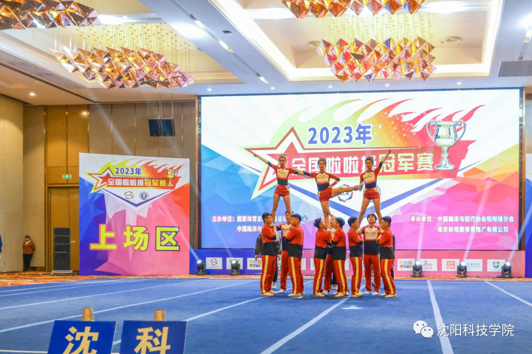 在全国冠军赛中,我校啦啦操队以过硬的基本功、高难度的技术动作和默契的配合斩获3项冠军,充分展示出沈科学子拼搏的精神和学校高水准的教学能力。同时,啦啦队更是受到辽宁男篮邀请,参加CBA辽宁男篮主场中场表演,队员通过高难度的技巧动作烘托浓厚的赛场氛围,得到全场观众的热烈掌声。