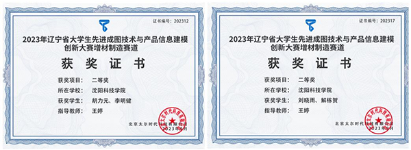 在2023年辽宁省大学生先进成图技术与产品信息建模创新大赛增材制造赛道中,荣获二等奖2项、三等奖3项。