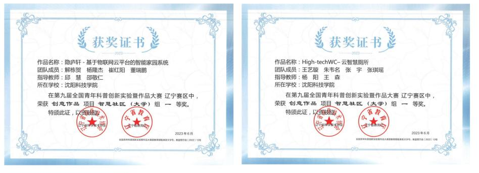 在第九届全国青年科普创新实验暨作品大赛辽宁赛区中,获一等奖2项。