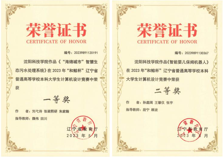 在2023年“和鲸杯”辽宁省普通高等学校本科大学生计算机设计竞赛中,获一等奖1项、二等奖1项。