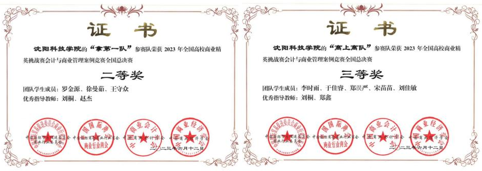在2023年全国高校商业精英挑战赛会计与商业管理案例竞赛中,获二等奖1项、三等奖1项。