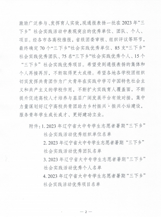 我校在2023年辽宁省大中专学生志愿者暑期文化科技卫生“三下乡”社会实践活动中喜获佳绩