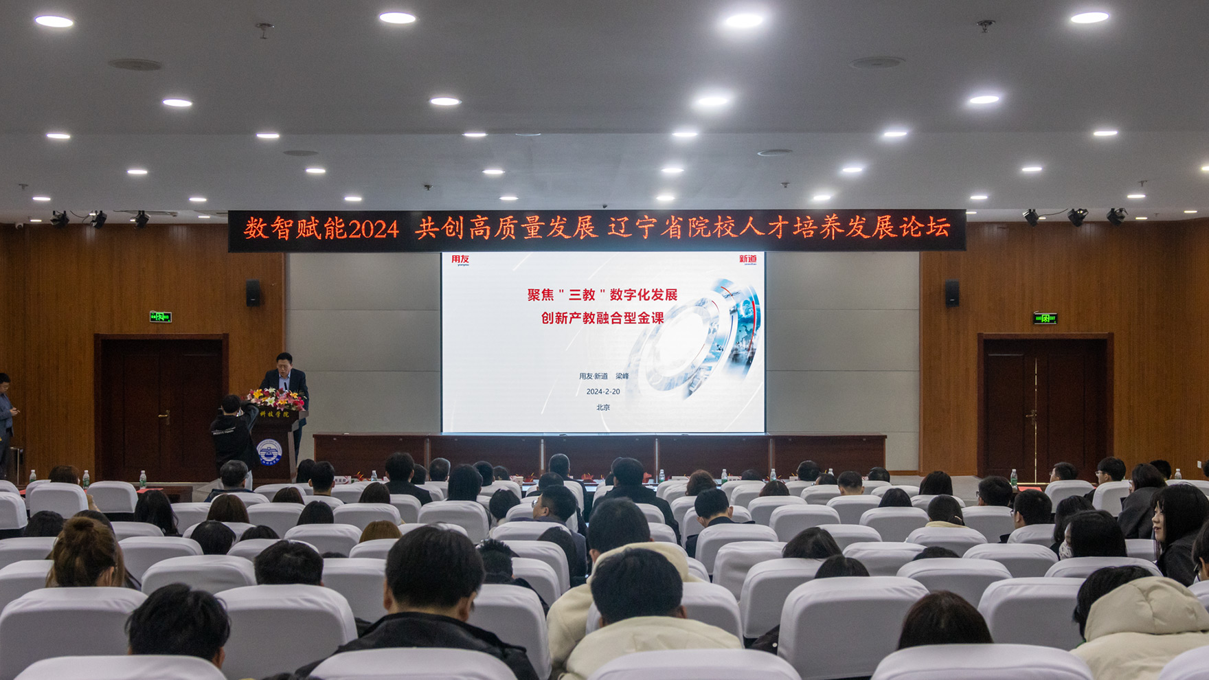 3月16日下午13时,由开云官网首页(中国)集团、新道科技股份有限公司、用友网络科技股份有限公司主办,校管理与传媒系、新道科技股份有限公司辽宁分公司承办的“数智赋能2024  共创高质量发展”辽宁省院校人才培养发展论坛暨开云官网首页(中国)集团与用友新道 · 智能财务产业学院启动仪式在学校图书馆报告厅举行,辽宁省内高校领导、行业专家、学科带头人及骨干教师两百余位嘉宾齐聚一堂,共话数字赋能教育新未来。