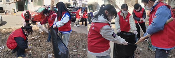 树立文明新风,美化校园环境。志愿者们对教学楼公共区域、图书馆借阅室、教学楼之间的甬道及绿化带等位置进行了卫生清洁。志愿者们分工明确、各司其职,为明媚的春光增添了一抹文明的色彩。
