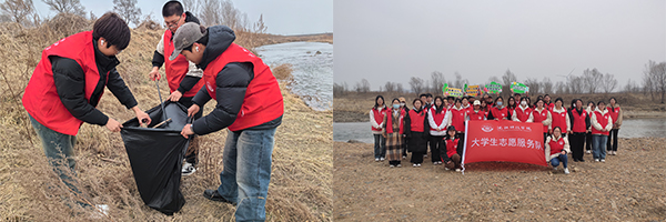 “河”我一起,保护母亲河。我校于2023年3月认领了经纬度始于E123.60355139、N41.56370165,经纬度止于E123.59629869、N41.57017150的苏家屯北沙河河段,河段长度1.18公里。志愿者们分工合作,配合默契,共同捡拾河道周边的白色垃圾、断枝落叶。此次活动被沈阳环境保护志愿者协会连续多次报道。
