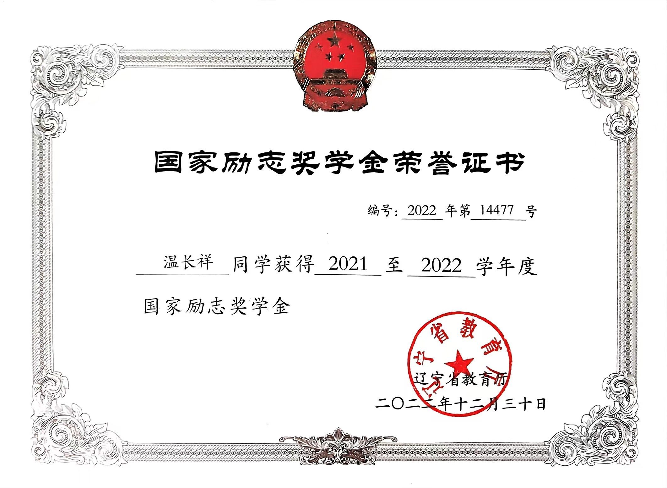 在学习方面,他始终秉持着“勤奋刻苦、自我驱动”的精神,主动拓展学习领域,努力克服学习上的困难。在校期间,连续两年获得“国家励志奖学金”、校“二等奖学金”。积极参与各级各类科创竞赛,荣获2022年辽宁省第三届智能制造科普创意创新大赛一等奖、2023年东北三省一区第三届大学生生态环保作品竞赛三等奖、2023年(第二届)辽宁省大学生智能技术应用大赛三等奖等。他坚信,只有自立自强,才能在学习的道路上走得更远、更稳。