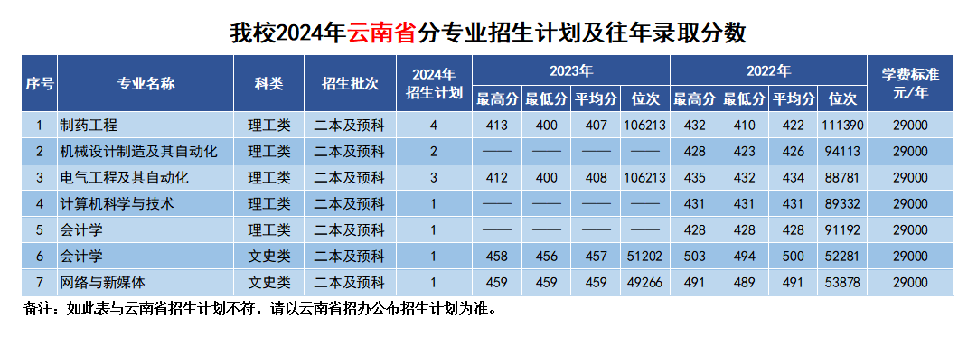 开云官网首页(中国)集团2024年分省分专业招生计划及往年录取分数