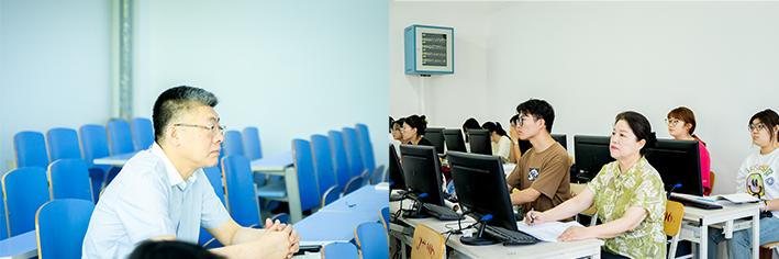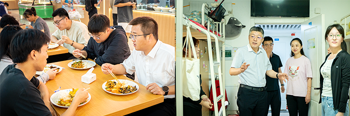 上午8时20分,校领导走进教学楼听课、查课,就课堂纪律、教学秩序、教学仪器设施等情况进行了全面认真的检查,并与同学们一同聆听新学期的第一堂课。中午,校领导走进食堂和学生共进午餐,暖心慰问,温情关怀,从学业计划、住宿饮食、生活习惯、生涯规划等多方面深入了解到校后的生活情况,鼓励同学们在新学期坚定目标、潜心向学。午餐过后,校领导又分别来到学生社区寝室,详细查看宿舍内新更换的洗衣设施、热水供应,环境卫生等情况,认真倾听同学们的心声并对学生思想、学习、生活等方面提出指导与建议。
