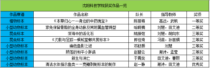 由辽宁省教育厅主办,沈阳农业大学承办的2024年辽宁省普通高等学校本科大学生动植物标本制作大赛于近日圆满落下帷幕,经过校赛选拔和决赛的激烈角逐,我校推荐的8项参赛作品全部获奖,其中一等奖1项,二等奖1项,三等奖5项,优秀奖1项。