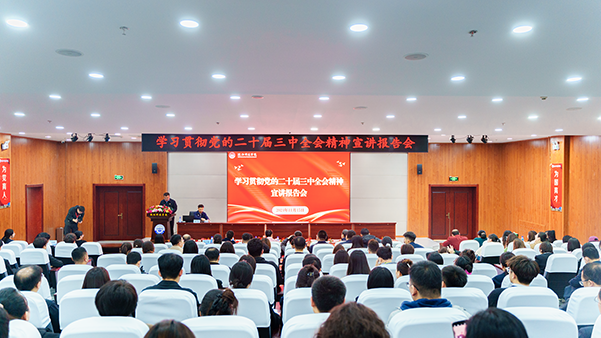 为深入理解、全面把握党的二十届三中全会精神,深化理论研究阐释,进一步将全面深化改革的战略部署转化为推进学校事业高质量发展的强大动能,11月15日,我校召开学习贯彻党的二十届三中全会精神宣讲报告会,校领导班子成员、师生党员共计200余人参加会议,报告会由党委副书记、副校长高洪震主持。