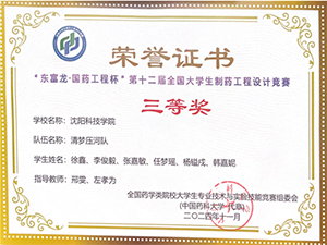 近日,由全国药学类院校大学生专业技术与实验技能竞赛组委会主办,东富龙科技集团股份有限公司与中国医药集团联合工程有限公司协办,重庆理工大学承办的“东富龙-国药工程杯”第十二届全国大学生制药工程设计竞赛落下帷幕。本次比赛中,我校共派出四支精英队伍参赛,凭借卓越表现,荣获国家级三等奖两项,为校争光。