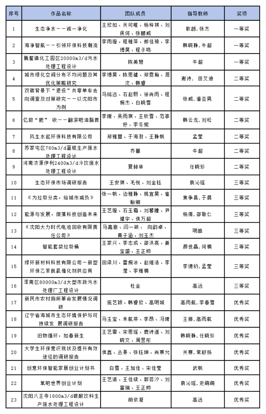 在“德泰杯”东北三省一区第四届大学生生态环保竞赛中,获得省级一等奖3项,二等奖6项,三等奖7项,优秀奖7项