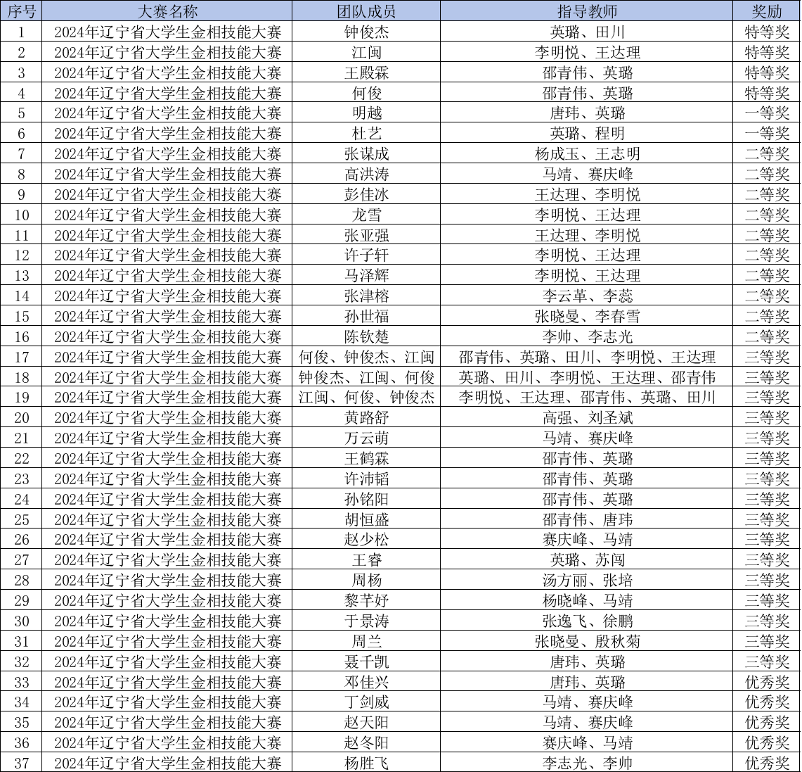 在2024年辽宁省大学生金相技能大赛中,获得省级特等奖4项,一等奖2项,二等奖10项,三等奖16项,优秀奖5项