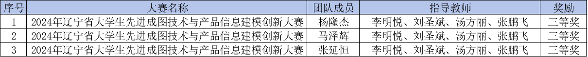 在2024年辽宁省大学生先进成图技术与产品信息建模创新大赛中,获得省级三等奖3项