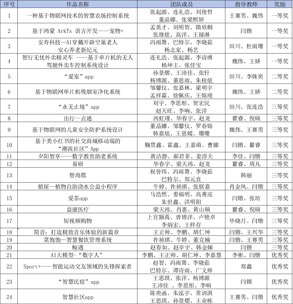 在2024辽宁省普通高等学校大学生移动应用开发大赛,获得省级一等奖4项,二等奖2项,三等奖14项,优秀奖4项