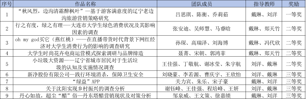 在第四届辽宁省普通高等学校本科大学生电商直播大赛中,获得省级一等奖3项,二等奖5项,三等奖4项