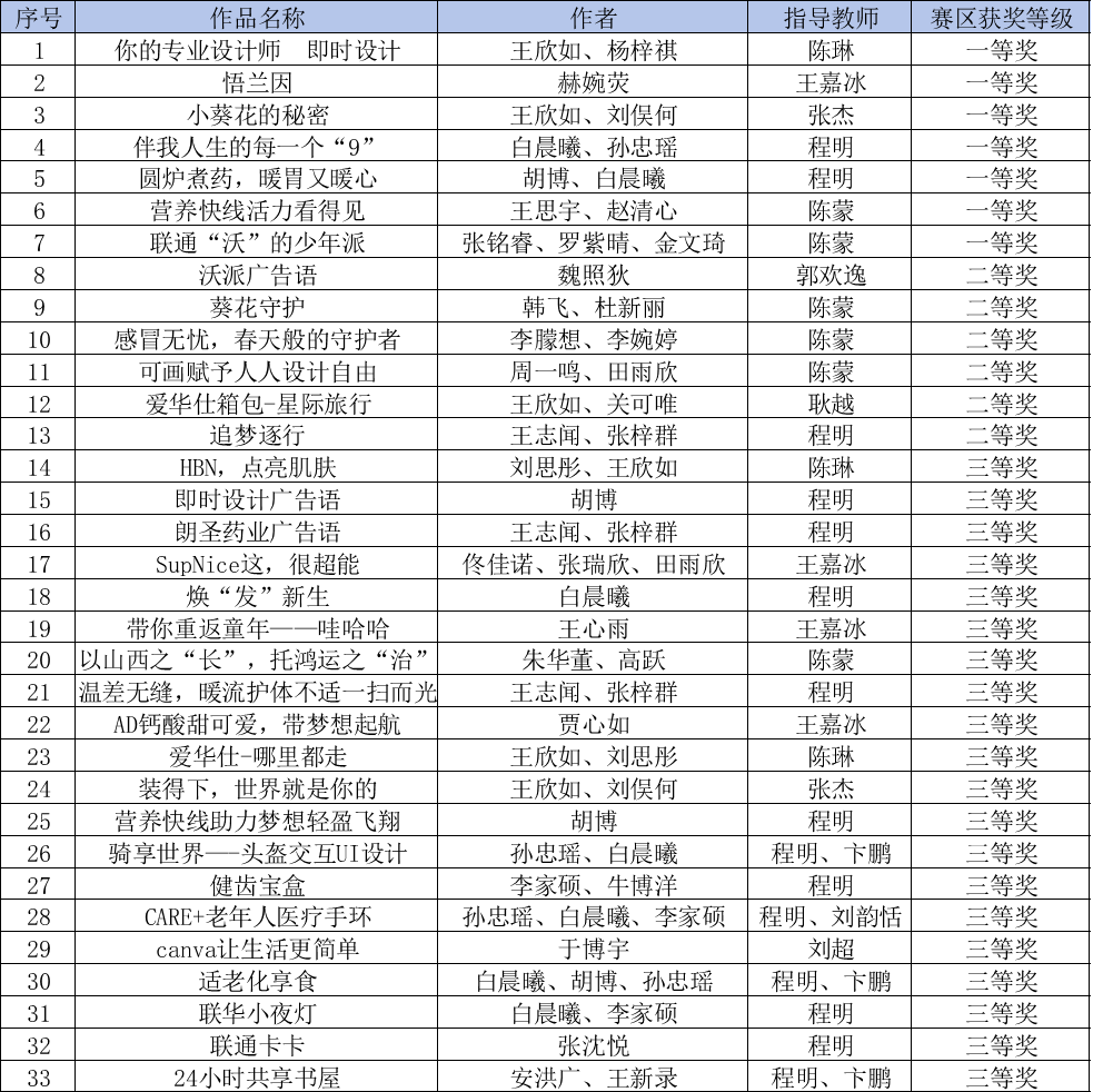 在2024年全国大学生广告艺术大赛中,获得省级一等奖7项,二等奖6项,三等奖20项
