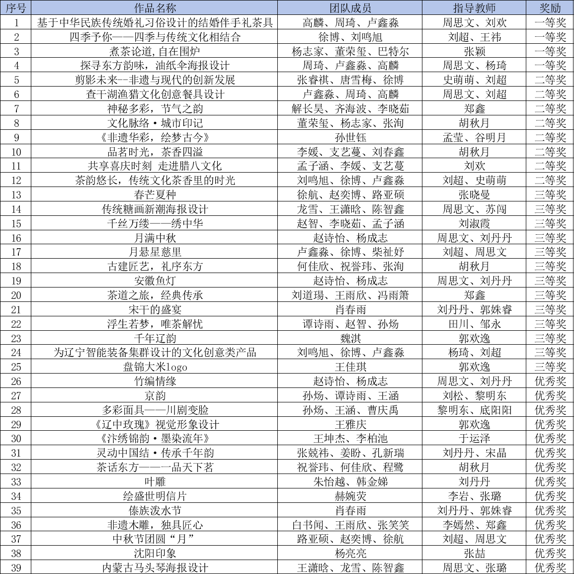 在2024年第四届“第嘉杯”辽宁省普通高等学校大学生中华优秀传统文化创新设计大赛中,获得省级一等奖4项,二等奖8项,三等奖13项,优秀奖14项