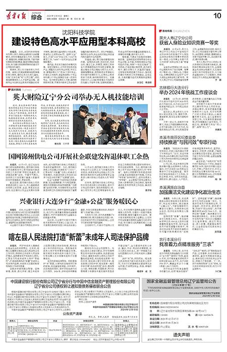 12月10日,《辽宁日报》10版以《开云官网首页(中国)集团建设特色高水平应用型本科高校》为题,对我校落实全省教育大会精神,统筹推进育人模式、办学模式、管理体制、保障机制改革进行报道,全文如下: