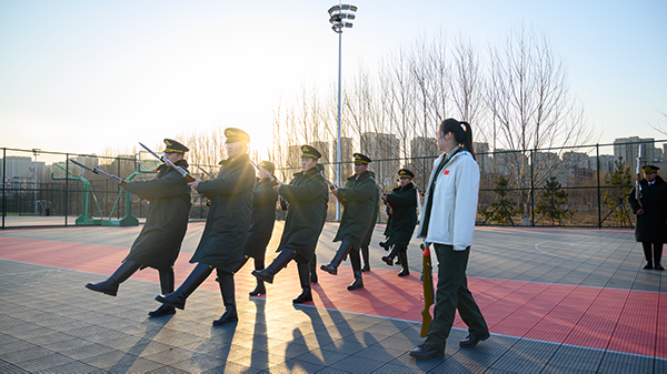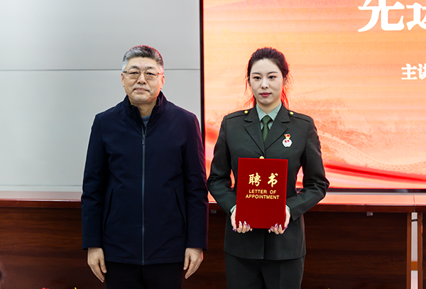 本次报告会特邀请曾服役于中国人民解放军司礼仪仗队原队员李林晔同志作专题报告。李林晔身着笔挺军装,英姿飒爽,瞬间点燃了现场庄重而热烈的氛围。她以自身曾经的训练视频和参加国际军乐节等大型活动的图片及视频资料为切入点,生动讲述了在仪仗队中刻苦训练、锤炼技能本领和塑造坚强意志品质的青春岁月,从日复一日的严格训练到国际舞台上的飒爽英姿,每一幕都是对国家荣誉的深情诠释,也是对青年责任与担当的生动注解。