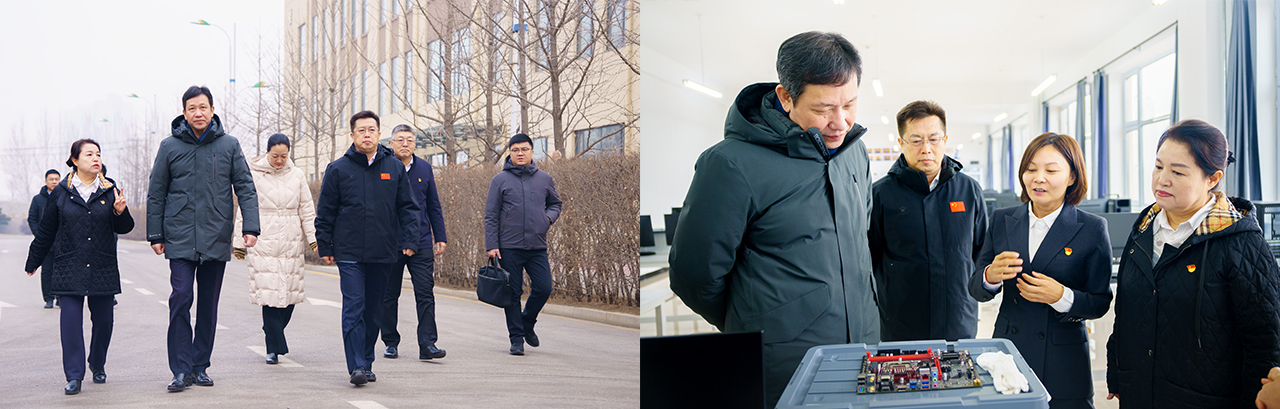 靳国卫指出,学校要充分发挥党建工作的重要功能,以“一突出五推进”为工作思路的高质量党建,全面推进校风、教风和学风建设。要深化产教融合,推动人才产业同频共振,充分结合区域经济与产业需求,着力在前沿领域拓展开设契合产业发展趋势的新兴专业方向,打造独具特色与影响力的专业集群。要提高学校红色育人基地的利用率,明确高校思政的价值意蕴,不断创新和完善“大思政”育人模式。要深入实施人才强校战略,通过研修访学、合作交流、能力培训等形式助力青年教师专业成长与职业发展,大力提升教学科研水平。引进高素质人才,充分发挥银龄教师优势,打造高水平专业化师资队伍,提高办学质量,办好人民满意的教育。要以统筹发展和安全为指引,认真排查影响学校安全稳定问题隐患,通过宣传教育、技能培训、督导检查,增强学校安全治理能力,切实筑牢学校安全稳定的发展基础。
