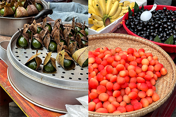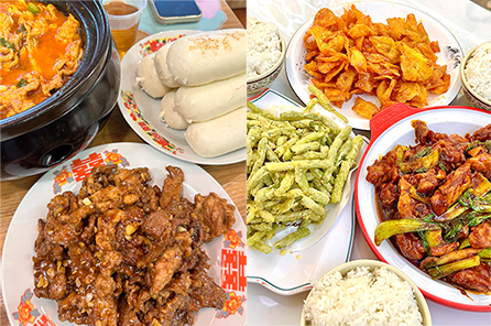 “包子、烩面、排骨、烤鸭、大虾仁,