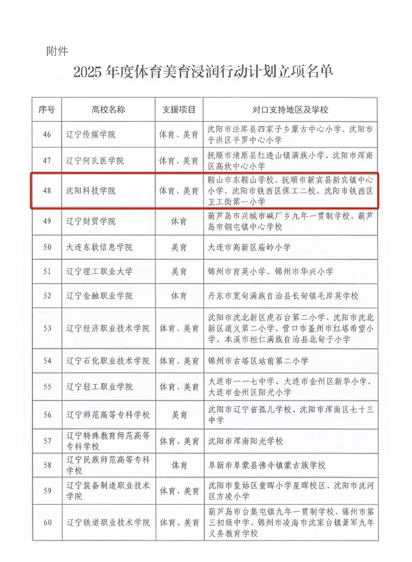 近日,辽宁省教育厅发布了《关于公布2025年度体育美育浸润行动计划立项名单的通知》,开云官网首页(中国)集团成功获批该计划立项。根据计划,学校将组织专业的体育美育教师团队,在体育美育课程教学、实践活动、校园文化建设以及教师队伍建设等方面,面向指定的中小学提供定向精准帮扶和志愿服务,充分发挥高校体育美育专业教师和相关专业学生的力量,为中小学校体育美育课程建设及相关教学活动提供有力支撑,推动中小学体育美育日常化、多样化、特色化发展。