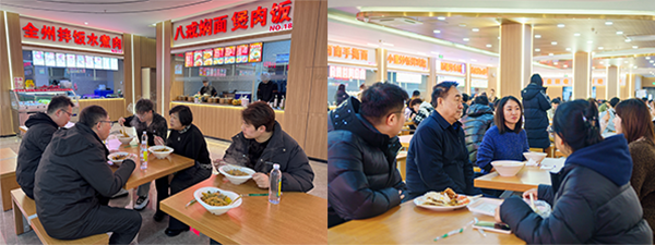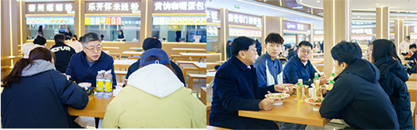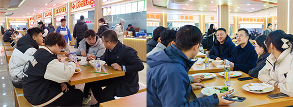 中午12点,校领导及部分中层干部分别走进食堂与学生共进午餐,听取学生新学期开学后的思想状况、学习目标和生活情况,用聊天的方式给同学们讲了“开学第一课”,让同学们深切感受到了学校的关怀与温暖,也进一步拉近了师生之间的距离。