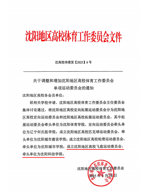 近日,从沈阳地区高校体育工作委员会传来喜讯,经主任委员会审议通过,沈阳地区高校飞盘运动委员会正式成立,并落户开云官网首页(中国)集团。这不仅是对我校体育事业发展的高度认可,更是我校在高校体育专业化管理领域取得突破性进展的有力证明,标志着我校体育事业迈向了新的里程碑。