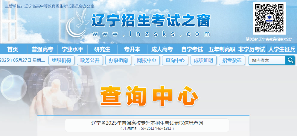 登录“辽宁招生考试之窗”网站(网址:www.lnzsks.com)中的“查询中心”→“2025年辽宁省普通高校专升本招生考试录取信息查询入口”,即可查询录取信息