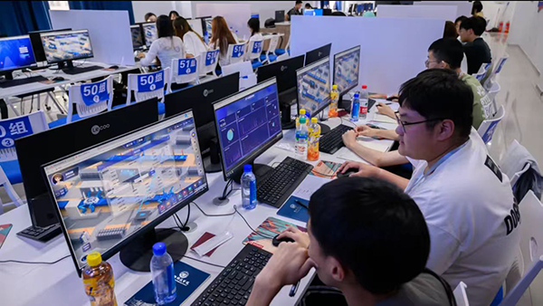 赛场上,选手们或聚精会神紧盯屏幕数据,或热烈讨论战术策略,严谨而热烈的竞赛氛围充分展现了当代大学生扎实的专业素养与昂扬的精神风貌。