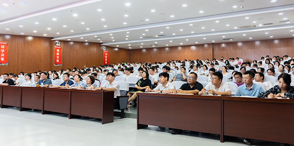 为进一步推动教育教学改革,提升教师队伍的专业素养、职业能力以及教学研究水平,切实保障学校教学成果奖的申报质量,7月8日,学校  于图书馆六楼报告厅成功举办“教学研究及教学成果奖培育”专题讲座。讲座由副校长崔国生教授主讲。此次讲座分主会场和十个分会场,校长宋吉鑫出席讲座,教务处、科技处等职能部门负责人、教学单位负责人及全体教师参与此次培训讲座由教务处处长王昭春主持。