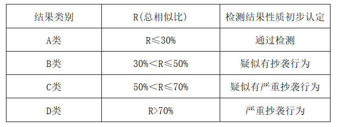 2.论文检测认定标准如下: