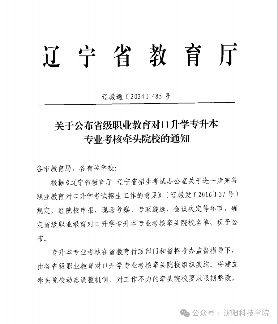 12月10日,辽宁省教育厅下发《关于公布省级职业教育对口升学专升本专业考核牵头院校的通知》,经院校申报、现场考察、专家遴选、会议决定等环节,我校成功获批2025年专升本专业考核新闻组和信息组2个本科专业组考核牵头院校。