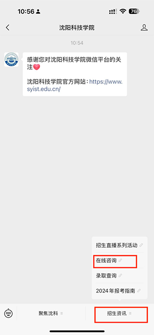 微信搜索关注“开云官网首页(中国)集团”公众号后前往主页,点击底栏“招生资讯”菜单栏的“在线咨询”即可在线咨询。公众号招生咨询平台问答页同时支持语音提问。